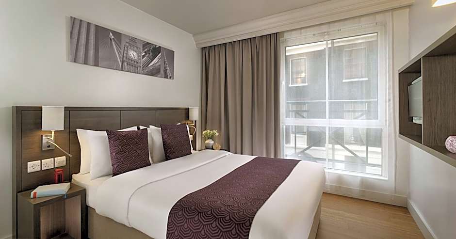 The apartment also includes bed linen, a safe, ironing facilities and a private bathroom with a hairdryer and toiletries.